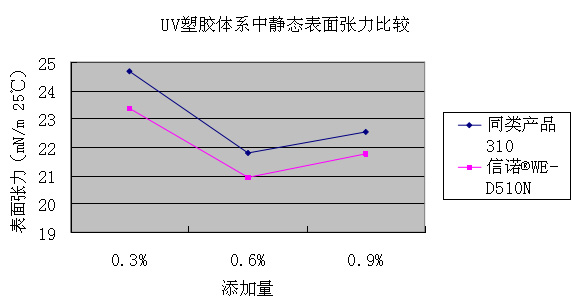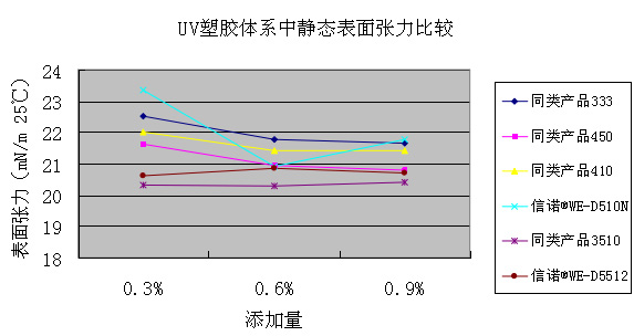 UV塑膠體系中靜態(tài)表面張力(mN/m 25 ℃):